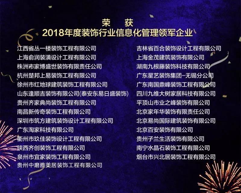 榮獲2018年度裝飾行業(yè)“信息化管理領(lǐng)軍企業(yè)” 名單