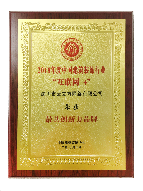 會(huì)上,云立方憑借過(guò)硬的品質(zhì)榮獲2019年度中國(guó)建筑裝飾行業(yè)“互聯(lián)網(wǎng)+”最具創(chuàng)新力品牌。獲得這一殊榮,是業(yè)界對(duì)于我們?cè)屏⒎狡放频目隙ā?/span>