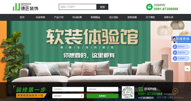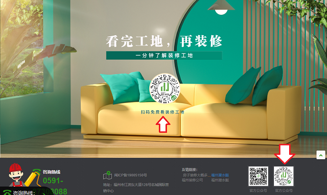 每個頁面的底部詳情信息內(nèi),除了咨詢電話、公司地址、友情鏈接,再加入工地二維碼,給到瀏覽者很好的觀感,如果有裝修需求,也會掃碼看看這個裝修公司的工地。