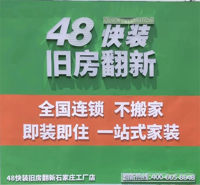 48快裝選擇舊房翻新這塊市場,提供有溫度的服務,承諾套餐內容保證48小時完工,質量不合格立即重裝,預算=決算,中途絕不加價,絕不多收客戶一分錢。