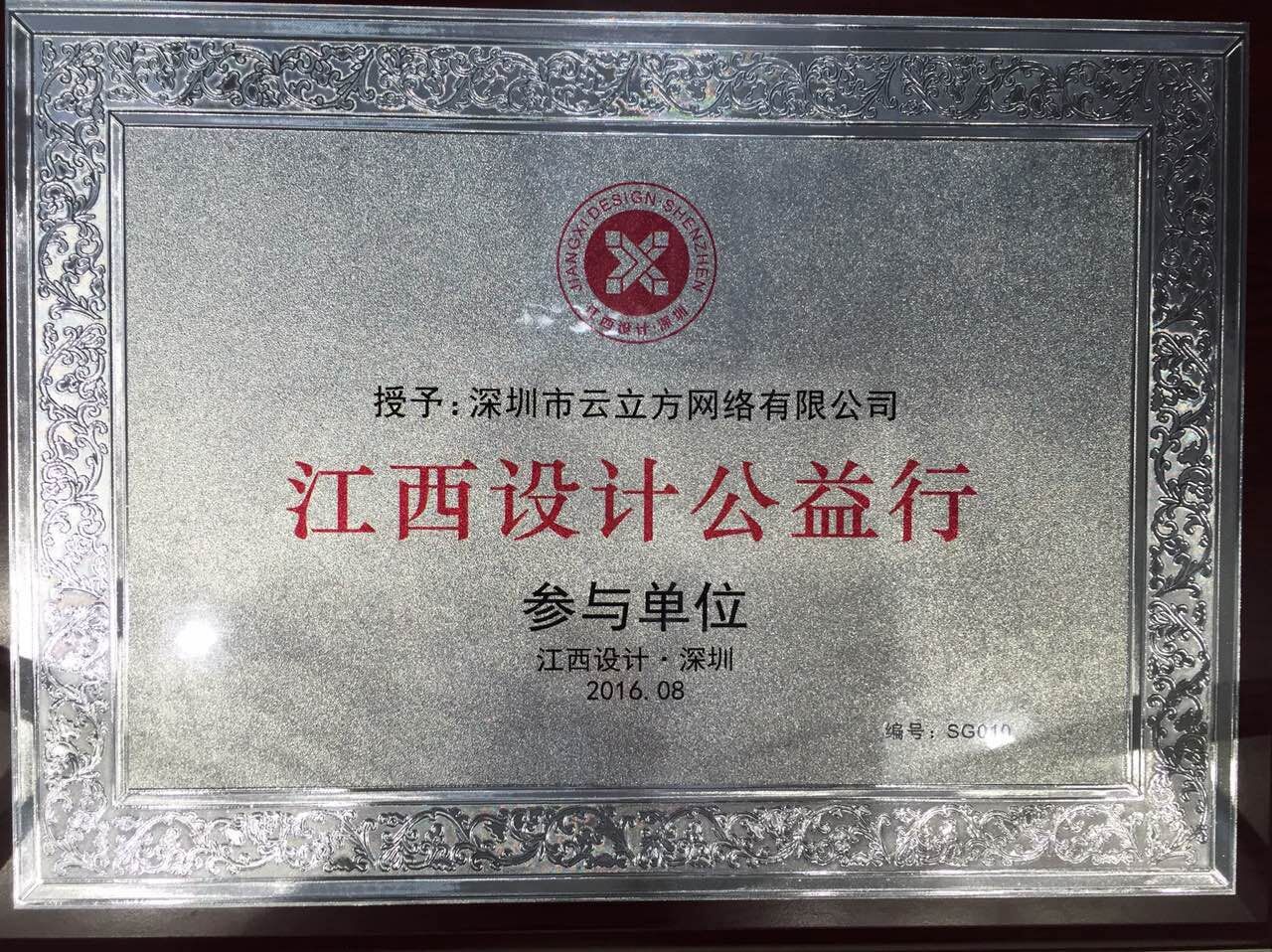 公益需要走心,更需要落地!2016年8月7日,由「江西設計.深圳」發起的為愛出發——江西設計公益行啟動禮在深圳會展中心6號館隆重舉行。深圳市消費者委員會、深圳市裝飾行業協會、深圳市博商同學會、深圳市寶安義工聯合會等深圳各大行業協會領導、深港知名設計師及江西籍設計師近300人出席并見證江西設計公益行的正式啟動。深圳市云立方網絡有限公司作為本次江西設計公益行的首批參與愛心單位,正式獲得授牌!