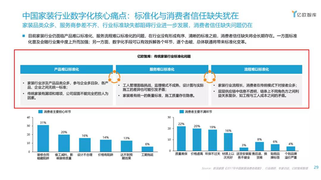 目前家裝行業仍面臨產品難以標準化、服務流程難以標準化的問題,數字化手段可以有效拆解各個環節,逐個擊破、總體聯通將帶來標準化變革。給消費者帶來更好的家裝體驗。