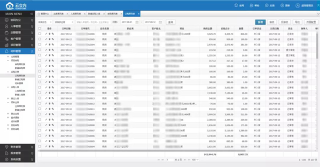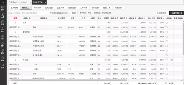 亮點8:施工項目的所有材料匯總(申購、采購、入庫、簽收、結算、銷售)查看對賬