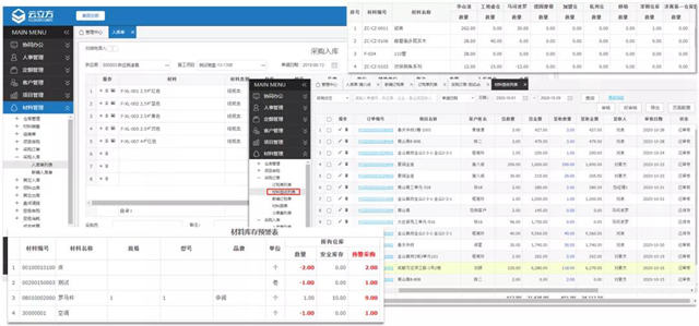 亮點1:內置完整的進銷存系統,極大提高材料部門工作效率